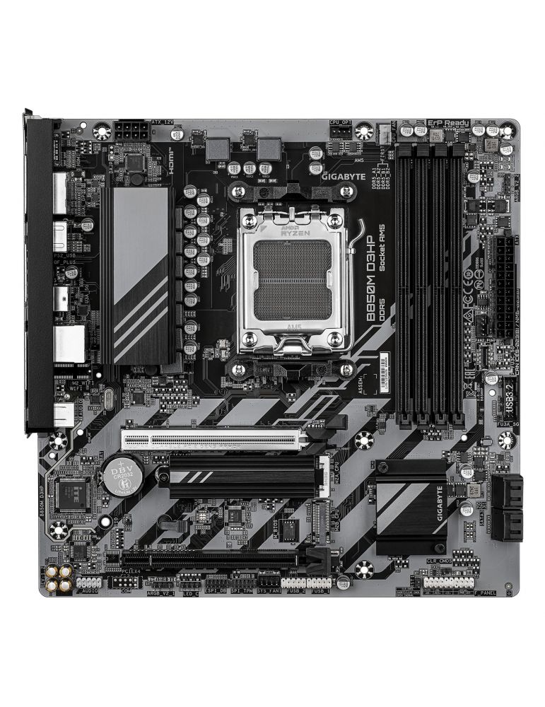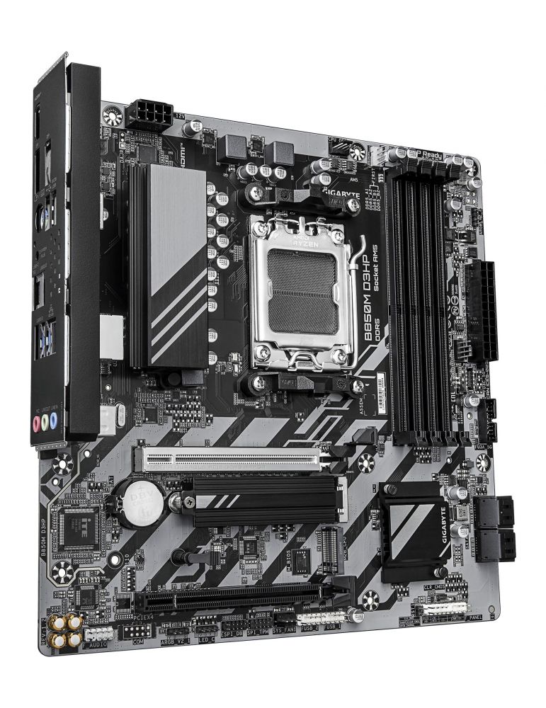 GIGABYTE B850M D3HP (rev. 1.2). Producătorul procesorului: AMD, Priza Processor: Mufă AM5, Compatibilitate procesoare: AMD Ryzen 7000 Series, AMD Ryzen 8000 Series, AMD Ryzen 9000 Series. Tipuri de memorie suportate: DDR5-SDRAM, Maximum de memorie internă: 256 Giga Bites, Tip sloturi de memorie: DIMM. Interfețe drive stocare compatibile: PCI Express 4.0, PCI Express 5.0, SATA III, Tipuri discuri de stocare suportate: HDD & SSD, Niveluri RAID: 0, 1, 5, 10. Rezoluţia maximă: 4096 x 2160 Pixel. Conector USB: USB Tip-A, USB tip-C
