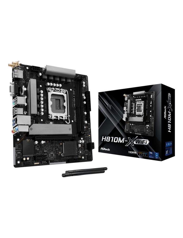 Placa de baza AsRock "H810M-X WIFI", skt. LGA 1851, chipset Intel H810, mATX, 2 x DDR5 max. 128 GB, USB 3.2 gen1 A, Type-C, 2.5