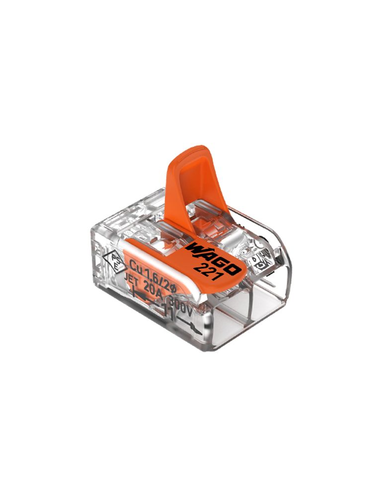 Conector de imbinare cu parghii pentru toate tipurile de conductori, 2 poli, max. 4 mm². Conectare / deconectare usoara datorita blocului cu leviere individuale. Folosit in aplicatii industriale, CCTV, aplicatii casnice. 100 buc. / SETNumar poli: 2Tip conductor: solid 0.2 mm² la 4 mm²; multifilar 0.2 mm² la 4 mm²; multifilar fin 0.14 mm² la 4 mm²Tensiune nominala: 450VCurent nominal: 32ATemperatura de lucru: max. 85 °CDimensiune: 13.2mm x 8.4mm x 18.6mmCuloare: transparent + portocaliuLungime dezizolare: 11 mm