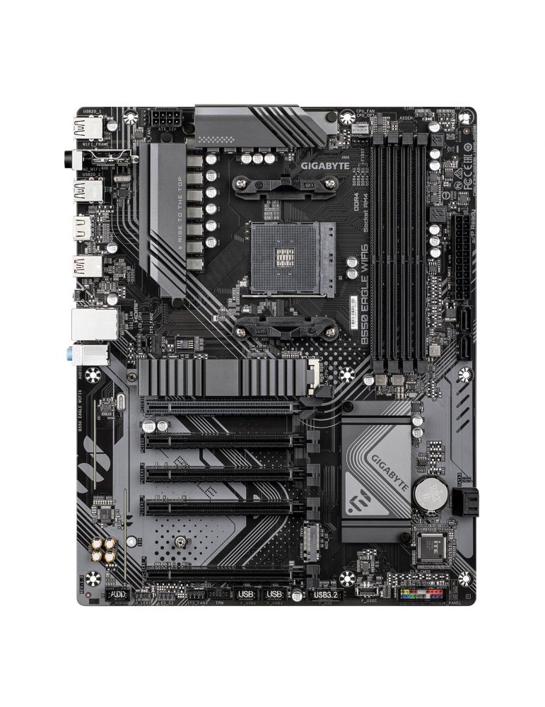 GIGABYTE B550 EAGLE WIFI6. Producătorul procesorului: AMD, Priza Processor: Mufă AM4, Compatibilitate procesoare: AMD Ryzen 3000 Series, AMD Ryzen 4000 Series, AMD Ryzen 5000 Series. Tipuri de memorie suportate: DDR4-SDRAM, Maximum de memorie internă: 128 Giga Bites, Tip sloturi de memorie: DIMM. Interfețe drive stocare compatibile: M.2, PCI Express 4.0, SATA III, Tipuri discuri de stocare suportate: HDD & SSD, Niveluri RAID: 0, 1, 10. Rezoluţia maximă: 4096 x 2160 Pixel. Tip interfață Ethernet: Gigabit Ethernet, Controler LAN: Realtek RTL8111H, Standard Wi-Fi: Wi-Fi 6 (802.11ax)