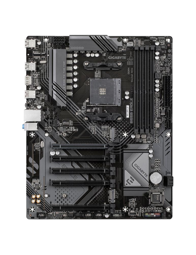 GIGABYTE B550 EAGLE. Producătorul procesorului: AMD, Priza Processor: Mufă AM4, Compatibilitate procesoare: AMD Ryzen 3000 Series, AMD Ryzen 4000 Series, AMD Ryzen 5000 Series. Tipuri de memorie suportate: DDR4-SDRAM, Maximum de memorie internă: 128 Giga Bites, Tip sloturi de memorie: DIMM. Interfețe drive stocare compatibile: M.2, PCI Express 4.0, SATA III, Tipuri discuri de stocare suportate: HDD & SSD, Niveluri RAID: 0, 1, 10. Rezoluţia maximă: 4096 x 2160 Pixel. Tip interfață Ethernet: Gigabit Ethernet, Controler LAN: Realtek RTL8111H