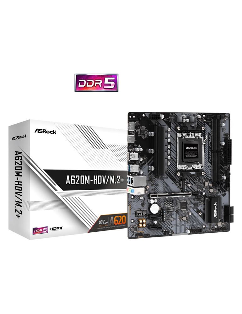 Placa de baza AsRock A620M-HDV/M.2+ AM5 2x DDR5 1x HDMI 2.1 1x DisplayPort 1.4 1x PCIe 4.0 x16 2x PCIe 3.0 x1 2x M.2 4x SATA Gigabit LAN mATX