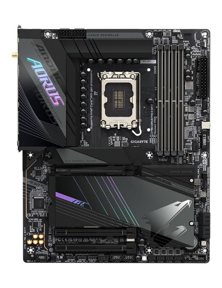 GIGABYTE Z790 AORUS PRO X WIFI7, Intel, LGA 1700, Intel® Celeron®, Intel® Core™ i3, Intel® Core™ i5, Intel® Core™ i7, Intel® Core™ i9,..., LGA 1700, 192 Giga Bites, DDR5-SDRAM