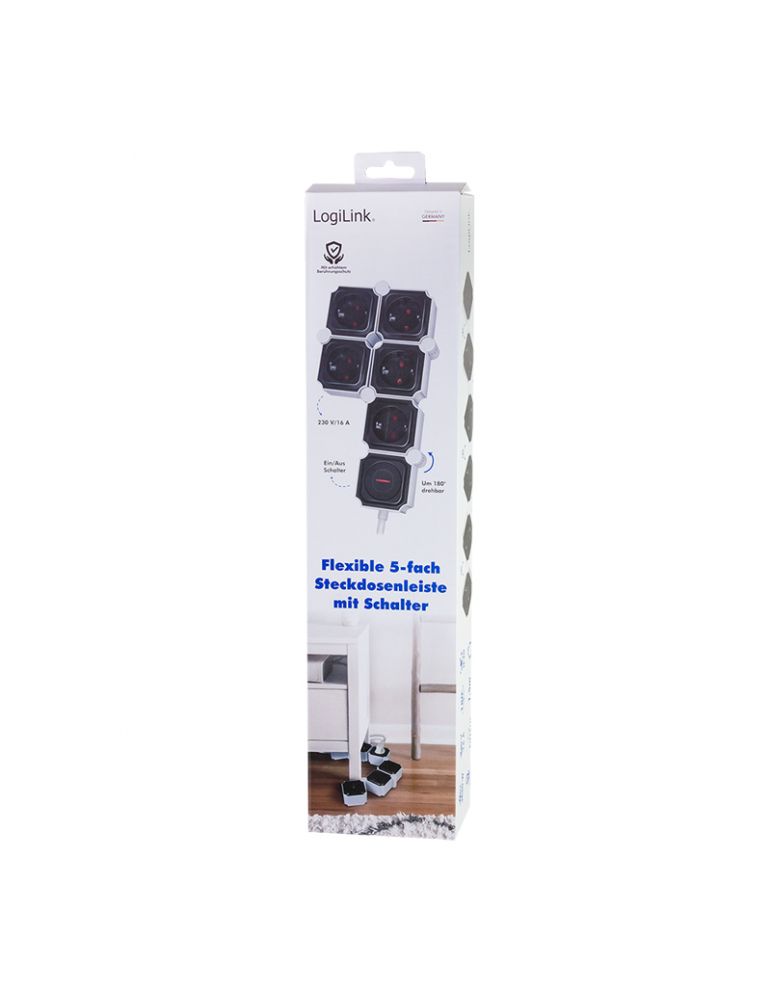 Prelungitor logilink flexibil 180 grade schuko x 5 cablu 3g 1.5mm2 230 v/16 a 50 hz max. 3600 w buton intrerupator iluminat