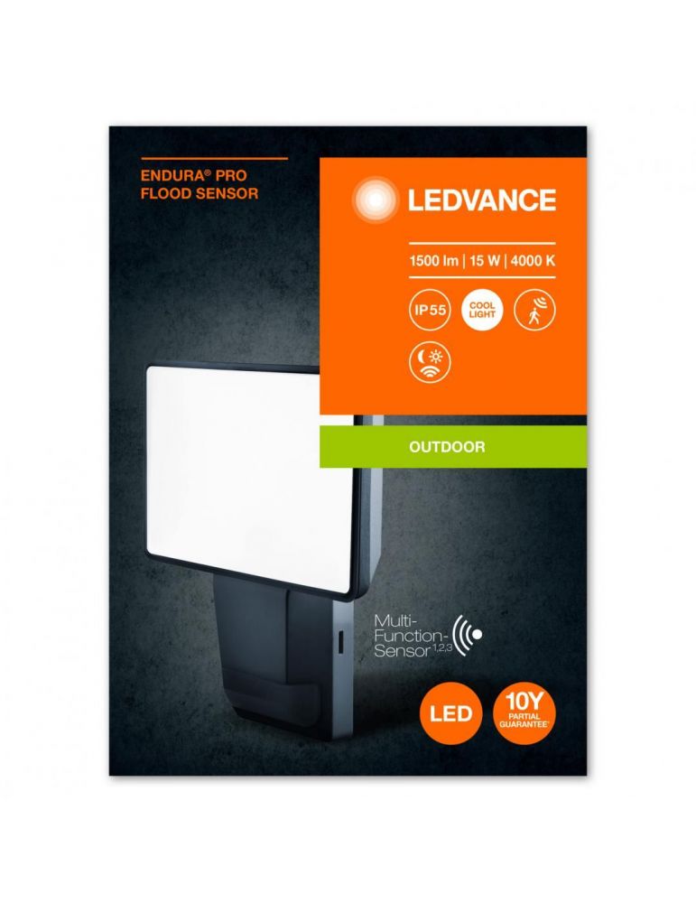 Proiector LED cu senzor de miscare si lumina Ledvance FLOODLIGHT ENDURA PRO, 15W, 220-240V, 1500 lm, lumina neutra (4000K), IP55/IK05, 205x151x56mm, policarbonat, Gri