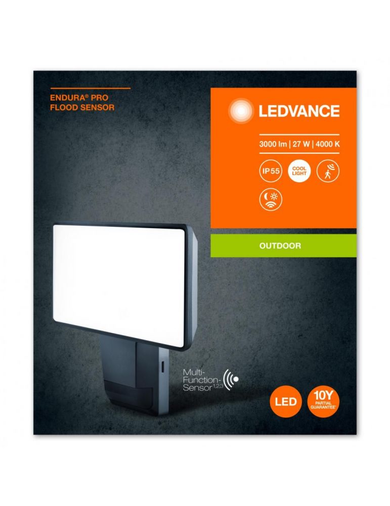 Proiector LED cu senzor de miscare si lumina Ledvance FLOODLIGHT ENDURA PRO, 27W, 220-240V, 3000 lm, lumina neutra (4000K), IP55/IK05, 225x201x56mm, policarbonat, Gri