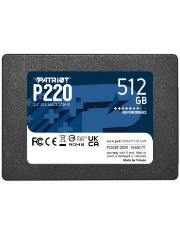 Patriot p220 sata 3 512gb ssd 550/500mb/s - Caracteristici