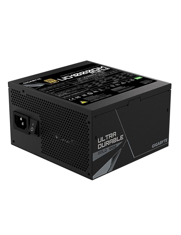 Sursa Gigabyte UD1000GM PG5, 1000W, Full-modulara, 80 Plus Gold, Eff. 90%, Active PFC, ATX 3.0, 1x120mm fan,Conectori: ATX/MB 20+4 Pin x 1 : 610mm*1, CPU/EPS 4+4 Pin x 2 : 600mm*2, PCI-e 6+2 Pin x 4 : 600mm+150mm*3,PCI-e 16 Pin x 1: 700mm*1, SATA x 8 : 600mm+150mm+150mm+150mm*2, 4 Pin Peripheral x 3+4-Pin floppy x 1 : 500mm+120mm+120mm+150mm*1 | Protectii: OVP/OPP/SCP/UVP/OCP/OTP | Cabluri sleeved | Dimensiuni: 150x140x86mm