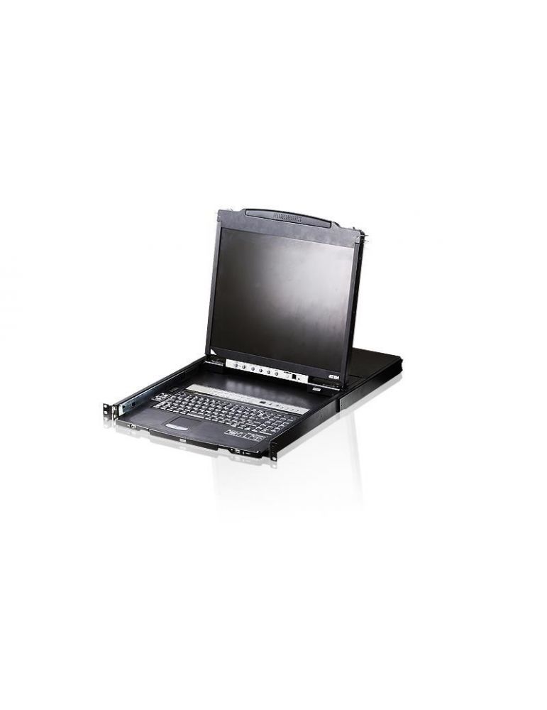 The CL5808N Slideaway™ Dual Rail LCD KVM Switch is a control unit that allows access to multiple computers from two PS/2 or USB KVM consoles. An extra console port is provided on the rear panel to manage the LCD KVM switch from an optional external consoles.