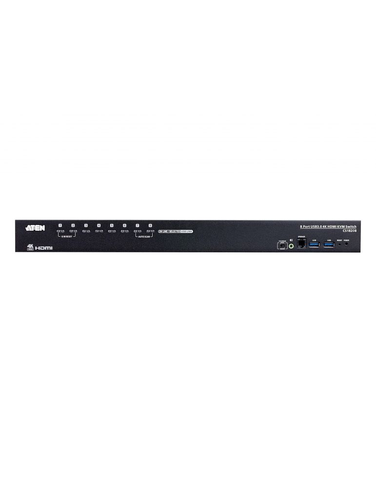 ATEN CS18208-AT-G. Tastatură de tip port: USB, Mouse tip de port: USB, Video Type portul: HDMI. Tip HD: 4K Ultra HD, Rezoluţia maximă: 4096 x 2160 Pixel, Lungime de bandă video: 60 Hz. Culoarea produsului: Negru, Material carcasă: Metal. Sursă de alimentare: DC, Tensiune intrare CC: 12 V, Consum de energie (tipic): 9,77 W. Lățime: 432,4 milimetri, Adâncime: 214,3 milimetri, Înălţime: 44 milimetri