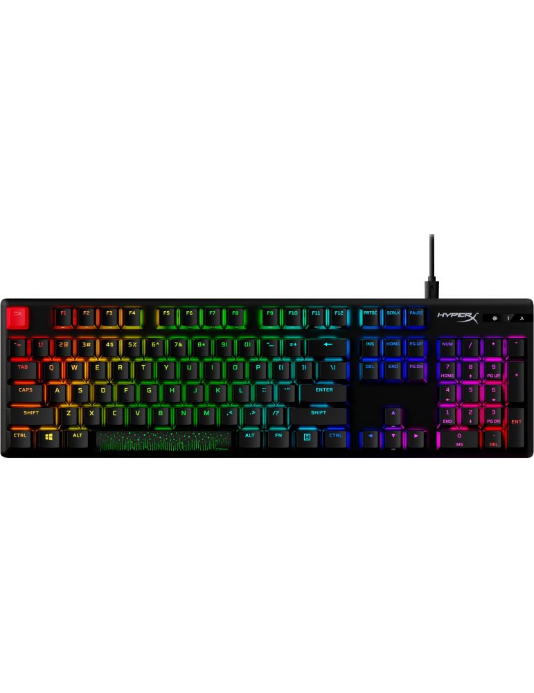 HyperX Alloy Origins PBT HX albastru - Tastatură mecanică pentru jocuri. Factor formă tastatură: Mărime completă (100%), Interfață dispozitiv: USB, Comutator tastatură: Switch mecanic taste, Schemei de tastatură: QWERTY. Tip retroiluminare: RGB LED. Lungime cablu: 1,8 m. Utilizare recomandată: Gaming. Culoarea produsului: Negru